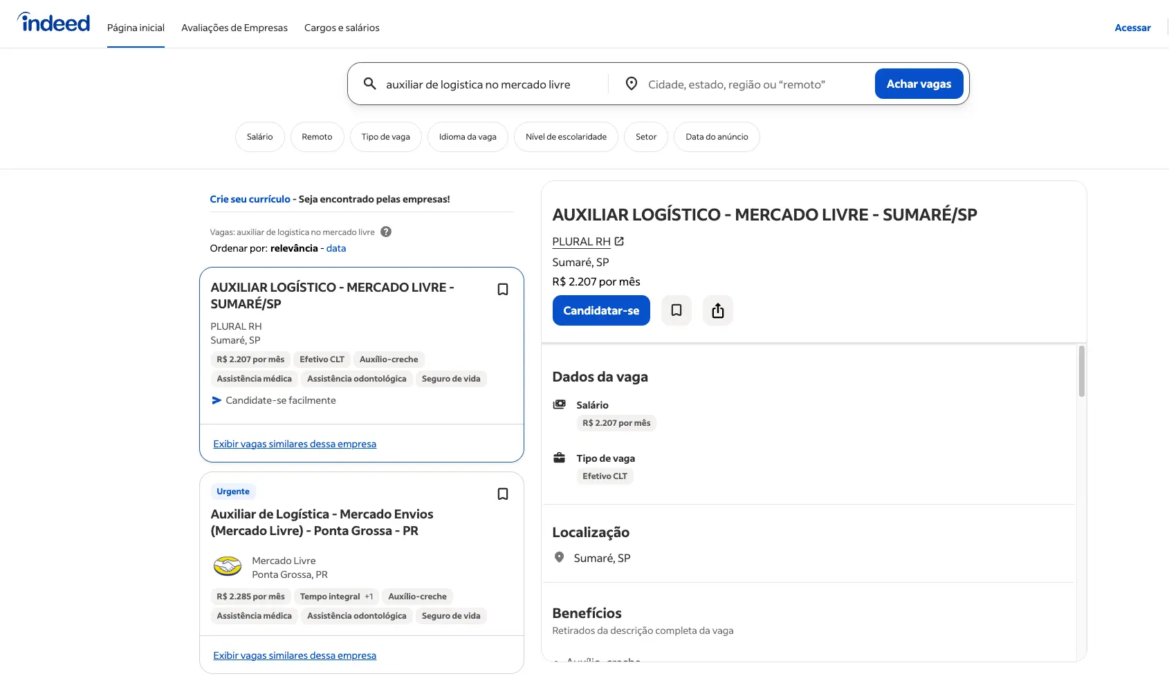 - Acesse o Indeed e busque pela vaga na sua cidade — entre em